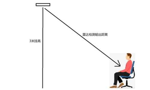 安装高度 3 米,测试静坐及走动两种状态下的覆盖范围。(模块是挂高使用,因此输出的检测距离相比直线测试会有一些误差)。