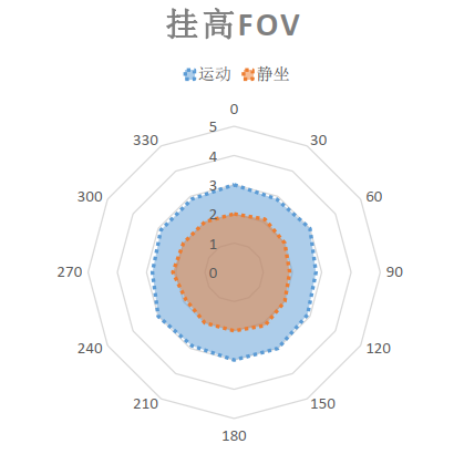 下图展示雷达默认配置下的静止状态(橙色区域) 和运动状态(蓝色区域)的水平覆盖范围, 供参考。